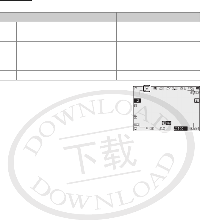 选择另购闪光灯组件的闪光模式。可用选项根据拍摄模式的不同而异。