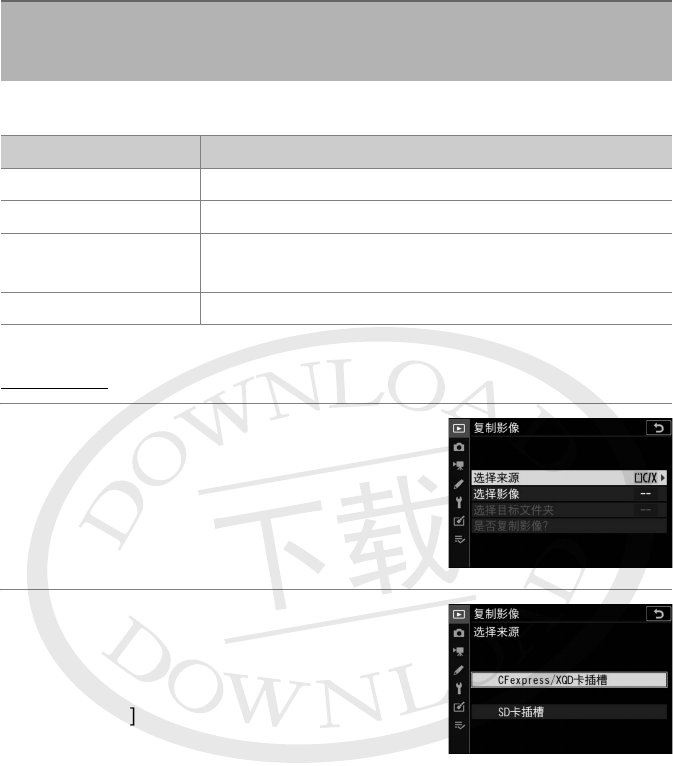 插有两张存储卡时将照片从一张存储卡复制到另一张。