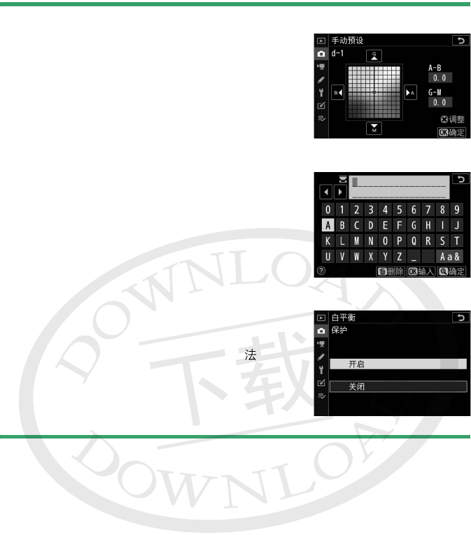 若要保护当前白平衡预设,请在手动预设白平衡菜单