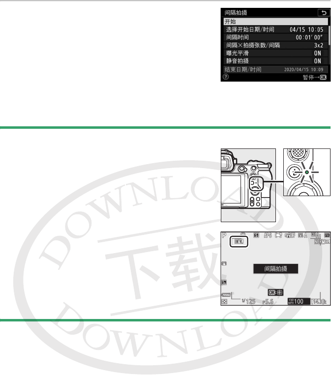 间隔拍摄过程中,存储卡存取指示灯将会闪烁。