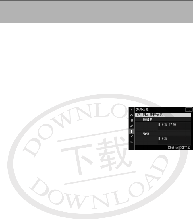 若要为今后拍摄的照片添加版权信息,请加亮