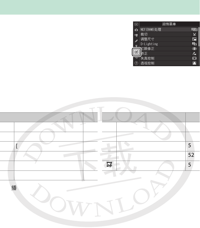 仅当照相机中插有包含照片的存储卡时才会显示润饰菜单。