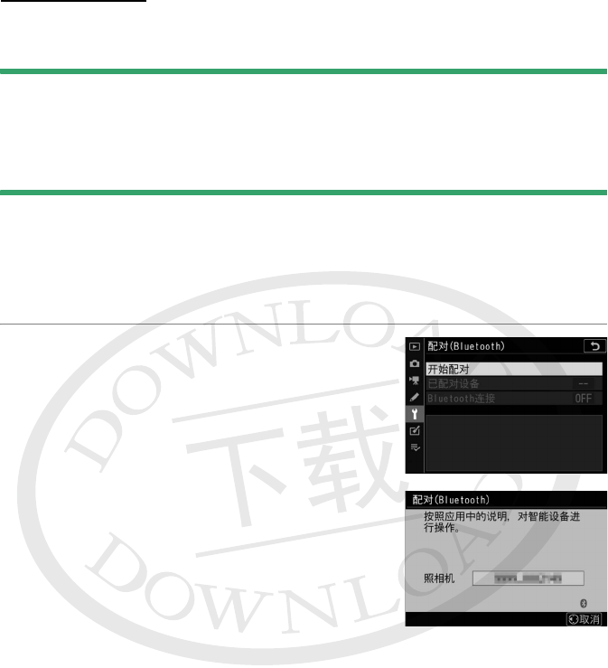 首次通过蓝牙连接之前,您需按照下文所述将照相机与智能设备配对。