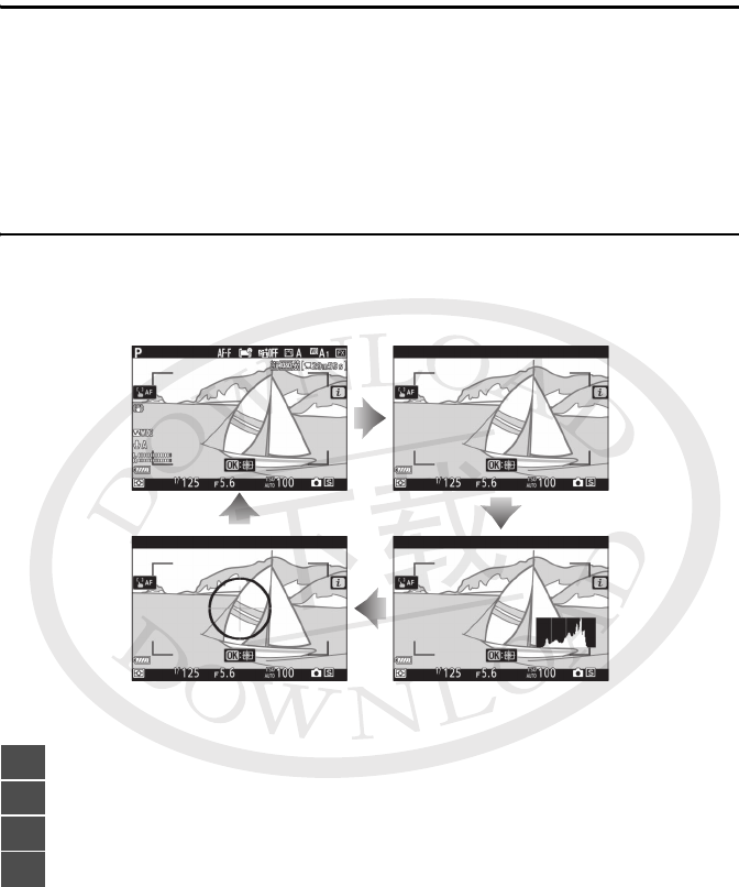 按钮还可用于选择在取景器中显示的信息。但是请注意,信息显示和闪光信息