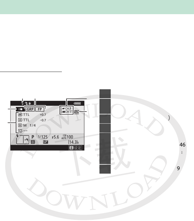 控制的遥控闪光灯组件的闪光信息。若要查看闪光信息,