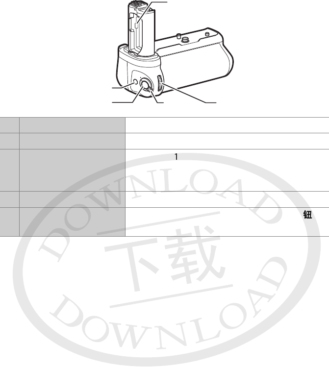 竖拍快门释放按钮 执行与照相机上相应控制相同的功能。
