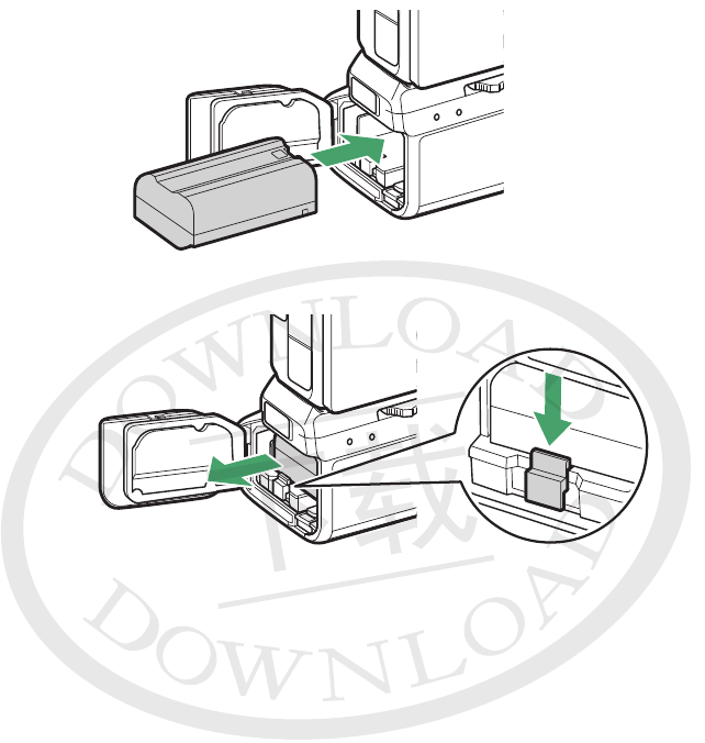 您可如图所示按下锁闩,再从电池座滑出电池以取出电池。