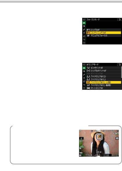 押してピント合わせをしたい顔や瞳を選ぶことができます。