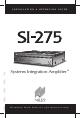 DS00219CMY-SI-275.qxp 6/7/05 3:18 PM Page 1 CONGRATULATIONS! Thank you for purchasing the Niles SI-275, one of the most flexible and convenient amplifiers ever offered. Like all Niles products, the SI-275 is built to the highest standards of quality control and reliability. With proper installation and operation, you'll enjoy years of trouble-free use. Niles manufactures the industry's most complete line of custom installation components and accessories for audio/video systems.