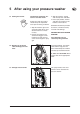 5 After using your pressure washer 5.1 Storing the washer The machine should be stored in a frost-free room! Pump, hose and accessories should always be emptied of water prior to storing as follows: 1. Stop the machine (press the start/stop switch “O” (1) and detach water hose and accessory. 2. Restart the machine and activate the trigger. Let the machine run until no more water runs through the spray gun. 5.2 Winding up of electric cable and high pressure hose 3.