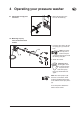 5 After using your pressure washer 5.1 Storing the washer The machine should be stored in a frost-free room! Pump, hose and accessories should always be emptied of water prior to storing as follows: 1. Stop the machine (press the start/stop switch “O” (1) and detach water hose and accessory. 2. Restart the machine and activate the trigger. Let the machine run until no more water runs through the spray gun. 5.2 Winding up of electric cable and high pressure hose 3.