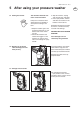 Nilfisk C 105.5 / C 115.3 5 After using your pressure washer 5.1 Storing the washer 5.2 Winding up of electric cable and high pressure hose (C115.3) The machine should be stored in a frost-free room! Pump, hose and accessories should always be emptied of water prior to storing as follows: 1. Stop the machine (press the start/stop switch “O” (1) and detach water hose and accessory. 2. Restart the machine and activate the trigger. Let the machine run until no more water runs through the spray handle.