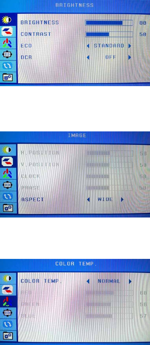 To adjust Brightness, Contrast, and 4 preset temperature modes (Standard, Game, Text, Movie). Dynamic Contrast