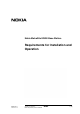 Requirements for Installation and Operation The information in this documentation is subject to change without notice and describes only the product defined in the introduction of this documentation. This documentation is intended for the use of Nokia's customers only for the purposes of the agreement under which the documentation is submitted, and no part of it may be reproduced or transmitted in any form or means without the prior written permission of Nokia.