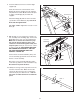 5. With the help of a second person, carefully tip the treadmill onto its right side. Partially fold the Frame (56) so the treadmill is more stable; do not fully fold the Frame yet. 5 B A Remove and discard the two indicated bolts (A) and the shipping bracket (B). 83 56 81 Attach a Base Pad (81) to the Base (83) in the location shown with a 1" Tek Screw (2) and a Base Pad Spacer (13). Then, attach another Base Pad (81) with only a 1" Tek Screw (2).