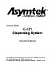 1 Getting Started Congratulations on your choice of a Century C-721 Series Advanced IC Encapsulation dispensing system! Overview This manual is intended primarily as a reference for production operators. However, process engineers and service technicians unfamiliar with Asymtek products may also find this manual useful as a general introduction to the system.