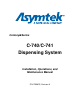 1 Introduction 1.1 Overview Congratulations on your choice of the Century C-740/C-741 Series Dispensing System! This manual is intended primarily as a reference for production operators, process engineers, and service technicians. However, others unfamiliar with Asymtek products may also find this manual useful as a general introduction to the system. The Century C-740/C-741 Series Dispensing Systems are designed to meet the diverse needs of the conformal coating market.