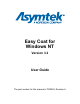 1 Introduction 1.1 Overview Welcome to Easy Coat for Windows NT (ECNT). Easy Coat for Windows software is a Windows NT application specifically designed for use with Asymtek's Century selective conformal coating systems. This manual is an instructional guide designed for system operators, computer programmers, and process engineers. It provides a complete tour of the Easy Coat for Windows software with detailed explanations of all features.