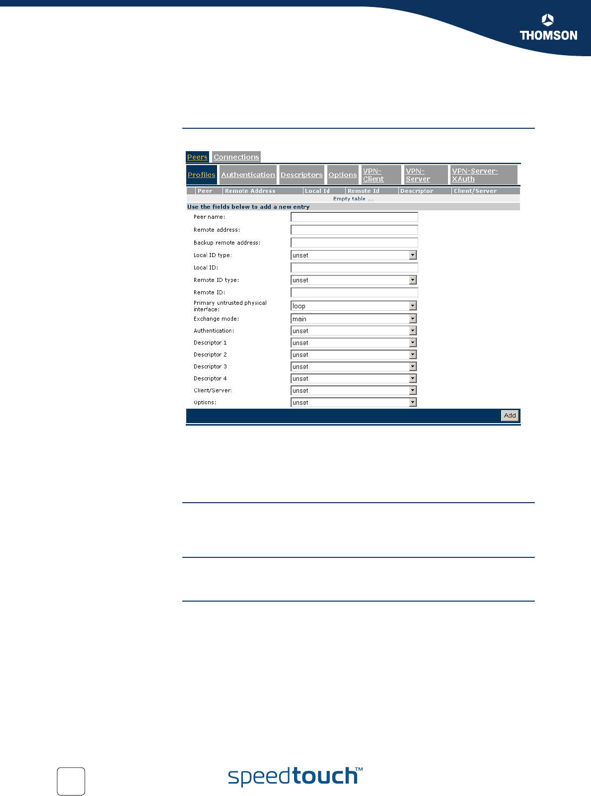 SpeedTouch™. This parameter is not used in the IKE negotiations with the remote
