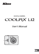 Specifications Nikon COOLPIX L12 Digital Camera Type Compact digital camera Effective pixels 7.1 million CCD 1/2.5-in. Total pixels Lens CCD 7.41 million 3× Zoom-Nikkor lens Focal length 5.7-17.1 mm (equivalent with 35mm [135] format picture angle: 35-105 mm) f/-number f/2.8–4.7 Construction 5 elements in 5 groups Digital zoom Up to 4× (equivalent with 35mm [135] format picture angle: approx.