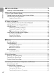 Introduction Preparation for Shooting L Basic Photography and Playback: Auto Mode b Selecting Scene Mode: Scene Mode F Anti-shake Mode A One-Touch Portrait Mode i More on Playback T Movies O Voice Recording Connecting to Televisions, Computers, and Printers m Shooting, Playback, and Setup Menus Technical Notes i