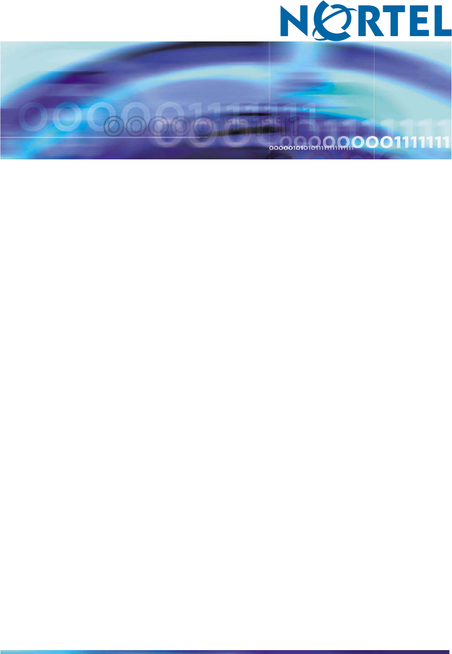Document status: Standard Document version: 01.02 Document date: 20 June 2007 Copyright © 2007, Nortel Networks All Rights Reserved. Sourced in Canada. The information in this document is subject to change without notice. The statements, configurations, technical data, and recommendations in this document are believed to be accurate and reliable, but are presented without express or implied warranty. Users must take full responsibility for their applications of any products specified in this document.