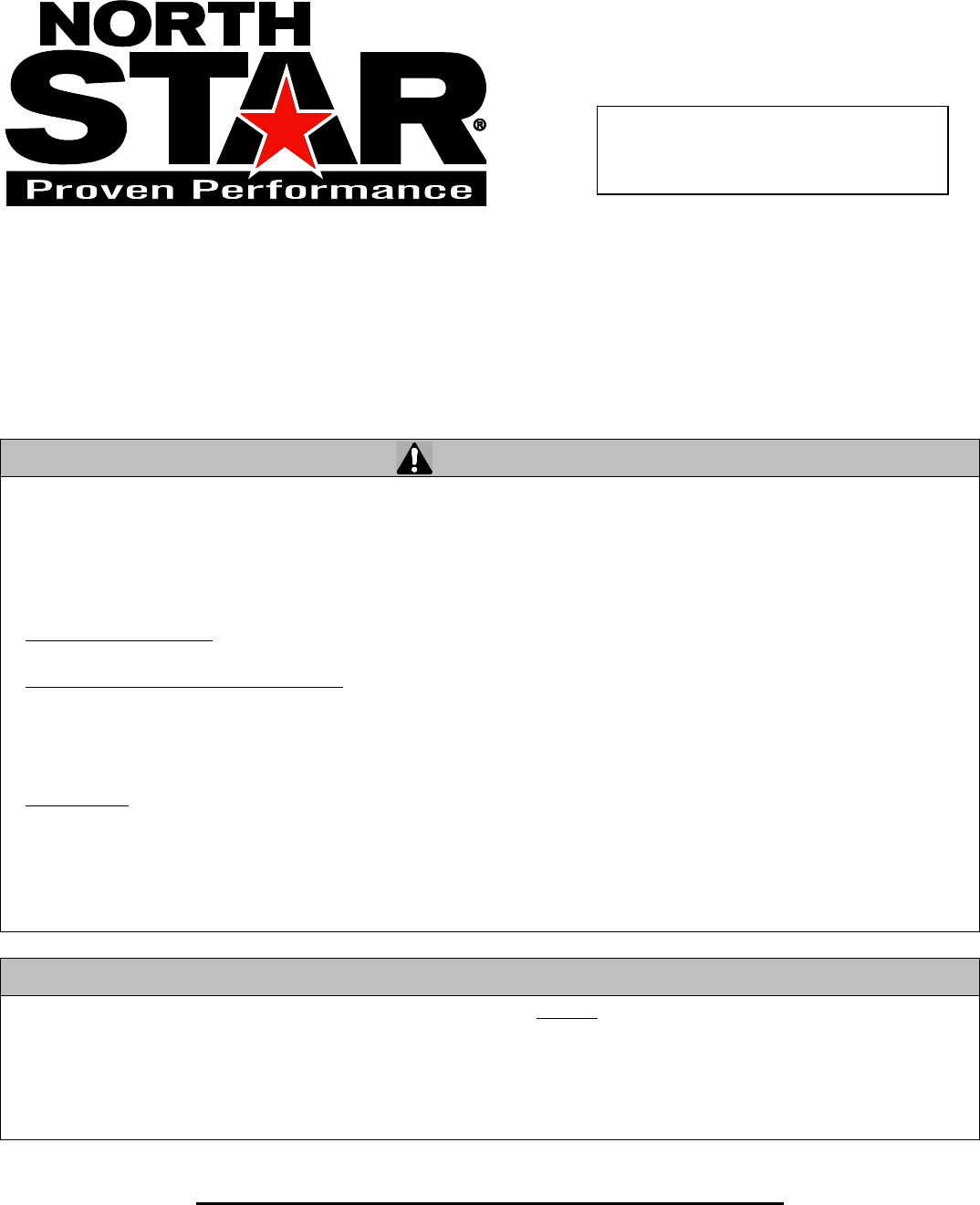 Limited Warranty Dear Valued Customer: The NorthStar Product you just purchased is built with the finest material and craftsmanship. Use this product properly and enjoy the benefits from its high performance. By purchasing a NorthStar product, you show a desire for quality and durability. Like all mechanical equipment this unit requires a due amount of care. Treat this unit like the high quality piece of machinery it is. Neglect and improper handling may impair its performance.