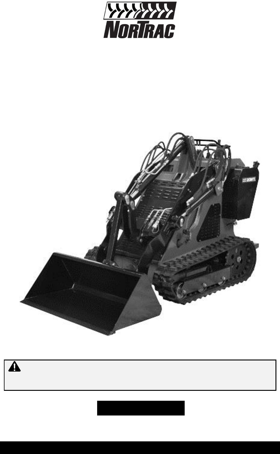 Thank you very much for choosing a NorTrac™ product! For future reference, please complete the owner’s record below: Serial Number/Lot Date Code: ________________________________ Purchase Date: ____________________________________________ Save the receipt, warranty, and this manual. It is important that you read the entire manual to become familiar with this product before you begin using it. This 20 HP Mini Track Gas Loader is designed for certain applications only.