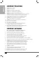 CONTENIDO PRECAUCIONES IMPORTANTES . . . . . . . . . . . . . . . 22 MEDIDAS IMPORTANTES . . . . . . . . . . . . . . . . . . . . 22 INTRODUCCIÓN . . . . . . . . . . . . . . . . . . . . . . . . 23 PARTES Y ENSAMBLE . . . . . . . . . . . . . . . . . . . . . 24 CÓMO FUNCIONA . . . . . . . . . . . . . . . . . . . . . . . 25 CONSEJOS ÚTILES . . . . . . . . . . . . . . . . . . . . . .