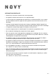GARANTIEVOORWAARDEN - LES CONDITIONS DE GARANTIE - DIE GARANTIEBEDINGUNGEN - WARRENTY CONDITIONS BELGIË Novy damkappen worden met de grootst mogelijke zorgvuldigheid geproduceerd. Desalniettemin kan er een defect optreden. Zowel binnen als buiten de waarborgperiode, kan de Novy technische dienst op een snelle en deskundige manier een herstelling van het toestel uitvoeren, zonder dat dit afbreuk doet aan de levensduur ervan.