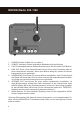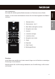 Note: Before using the device for the first time, you have to remove the retaining tab of the battery. English 1. Standby On/Off Deutsch The remote control The operating elements and functions provided here are almost identical to those on the iRadio. 2. Station keys 1 to 5 3. Back Button (navigate back) 4. Navigate up 5. Selection 6. Volume lower 7. Volume higher 8. Navigate down 9. Stop 10. Skip Back 11. Skip Forward 12.