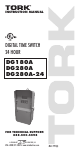 TORK MODEL DG180A/DG280A/DG280A-24 7 DAY DIGITAL TIME SWITCH READ INSTRUCTIONS CAREFULLY BEFORE ATTEMPTING TO INSTALL TIME SWITCH. SEE WARNING ON FRONT PANEL – Failure to comply with instructions could result in personal injury and/or property damage. INSTALLATION: UNIT IS TO BE INSTALLED BY A LICENSED ELECTRICIAN 1. Remove unit from enclosure by pushing the inside tab (located near the outside hasp) to the right. Swing unit to left and remove. 2.