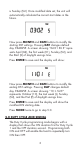 is Sunday (SU.) Once modified date set, the unit will automatically calculate the correct start dates in the future. Now press MONTH and DATE buttons to modify the starting DST settings. Pressing DAY changes default day. EXAMPLE: A screen showing “04:01 SU S” repre sents April (04), the first week (01), Sunday (SU), and the Start (S) of daylight savings time. Press ENTER to save and the display will show: Now press MONTH and DATE buttons to modify the ending DST settings. Pressing DAY changes default day.