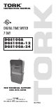 TORK MODEL DGS100A/DGS100A-12/DGS100A-24 7 DAY DIGITAL TIME SWITCH READ INSTRUCTIONS CAREFULLY BEFORE ATTEMPTING TO INSTALL TIME SWITCH. SEE WARNING ON FRONT PANEL – Failure to comply with instructions could result in personal injury and/or property damage. INSTALLATION: UNIT IS TO BE INSTALLED BY A LICENSED ELECTRICIAN 1. Remove unit from enclosure by pushing the inside tab (located near the outside hasp) to the right. Swing unit to left and remove. 2.