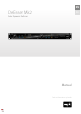DeEsser Mk2 DeEsser Mk2 Specifications Security Advices Analog inputs & outputs; XLR (balanced) Maximum input gain 21 dBu Input impedance 22 kΩ Maximum output gain 21 dBu Output impedance 150 Ω Frequency range (-3 dB) 20 Hz – 50 kHz THD + N (0 dBu, 10 Hz – 22 kHz) -90 dB Noise (A-weighted) -97 dB Dynamic range 118 dB Internal Linear Power Supply with Toroidal Transformer Operating voltage for analog audio +/- 15 V Operating voltage for relays and LEDs + 12 V Mains Power Supply Mains
