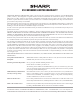US CONSUMER LIMITED WARRANTY SHARP ELECTRONICS CORPORATION (“Sharp”) warrants to the first consumer purchaser (“Purchaserˮ) that this SHARP brand product (“Productˮ), when shipped in its original container and sold or distributed in the United States by Sharp or an authorized Sharp dealer or reseller, will be free from defective workmanship and materials, and agrees that it will, at its option, either repair the defect or replace the defective Product or part thereof with a new or remanufactured equivalent