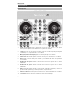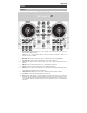 Funktionen Oberseite 1. Browse-Regler: Drehen Sie den Regler, um durch Crates und Tracks zu suchen. Durch Drücken können Sie durch die Software-Panels navigieren. 2. Laden: Drücken Sie eine dieser Tasten, während ein Track ausgewählt ist, um ihn Deck 1 oder 2 innerhalb der Software zuzuweisen. 3. Haupt Gain: Passt die Gesamtlautstärke in der Software an. 4. Cue Gain: Regelt die Lautstärke des Kopfhörer-Cueing innerhalb der Software. 5.