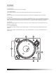 CONTROLS continued Tone Arm Parts 7 7. Counter Weight and Scale Ring The Counterweight is used to balance the head shell and cartridge assembly so that the proper amount of stylus pressure is applied to the record. 8. Anti-Skate Adjustment This knob is used to compensate for inward tracking forces. See Tonearm Setup for more details. 9. Tonearm Cue System This cueing system allows the tone arm to be positioned at a certain point above the record and slowly engaged.