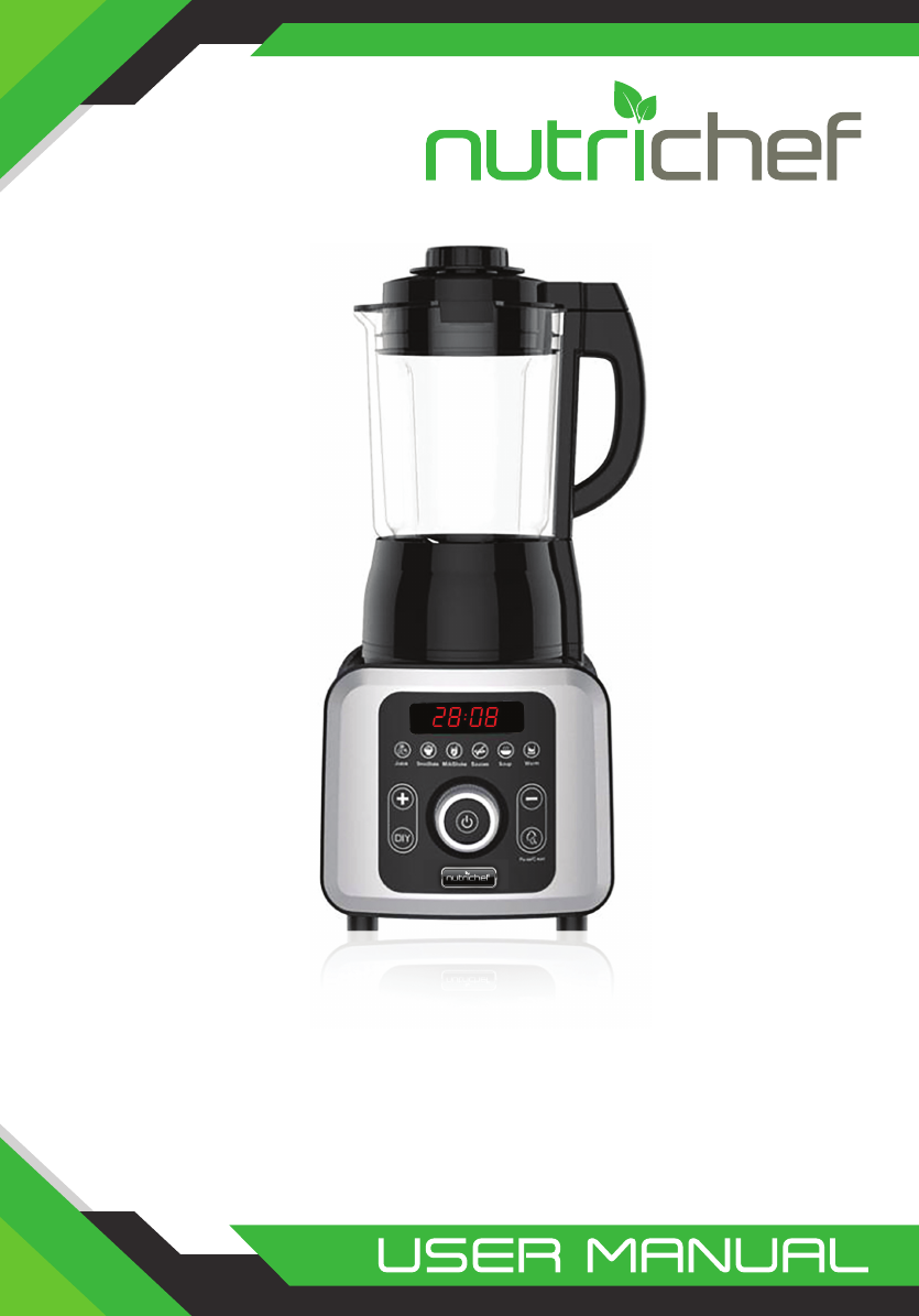 Chapter 6 Technical Specifications NCBLSM150 Professional Home Kitchen Heating Blender Digital Countertop Blender with Heat for Soup Maker Ability, Adjustable Time/Temp/Speed Settings Features: • Professional Home Kitchen Blender System • Sleek, Modern Food Blender Style • Powerful High-Speed Blending Motor • Heating Function for Soup Maker Ability • Simple Electric Plug-in Design • Unique Button-Activated ‘Pulse’ Blend Ability • Warming ‘Keep Warm’ Mode • Adjustable Blending Time & Blend Speed Settings •