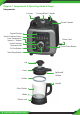 Chapter 2 Components & Operating Guide & Usage Components Cushion Driving Wheel Coupler Switch Contact Digital Display Quick Function Screen Time, Tempreture, Speed, +/- Button Quick Function Selector Knob Power Cord Pulse/Clean Button DIY Set Button Start/Stop Button Lid Cover Spill-proff Carbon Gasket Handle Glass Pitcher Blade Pitcher seat 4 www.NutriChefKitchen.