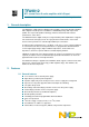 TFA9812 NXP Semiconductors BTL stereo Class-D audio amplifier with I2S input n n n n n No high system clock required (PLL is able to lock on BCK) No external heat sink required 5 V tolerant digital inputs Supports dual coil inductor application Easy application and limited external components required 2.