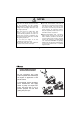 The exhaust outlet of the silencer can be rotated to any desired position in the following manner: Assembly screw 1) Loosen the locknut and assembly screw. 2) Set the exhaust outlet at the required position by rotating the rear part of the silencer. 3) Re-tighten the assembly screw, followed by the locknut. Exhaust pressure nipple Baffle Reminder! Model engines generate considerable heat. Do not touch any part of your engine until it has cooled.