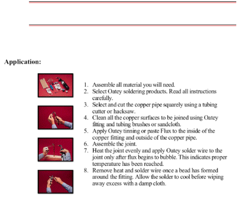 copper tubing. We recommend that you use Oatey fitting and tubing brushes or sandcloth. The