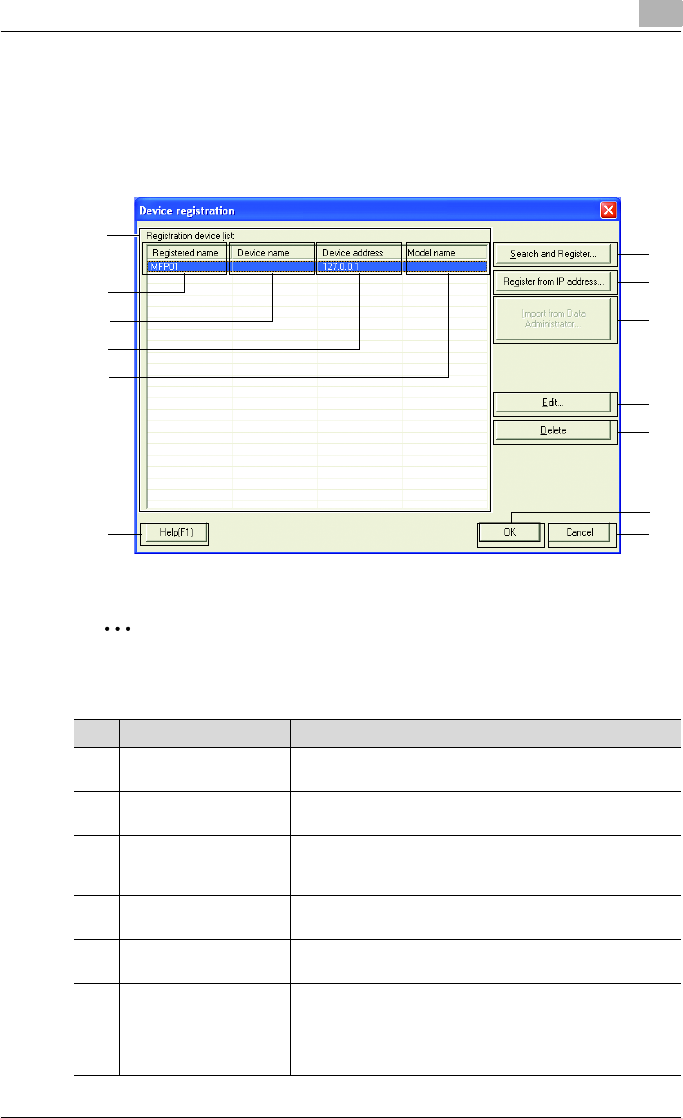 1 Registered device list Displays a list of multifunctional products to be backed up