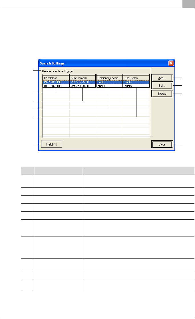 10 [Close] button Closes the Search Settings dialog box, and displays the Reg-