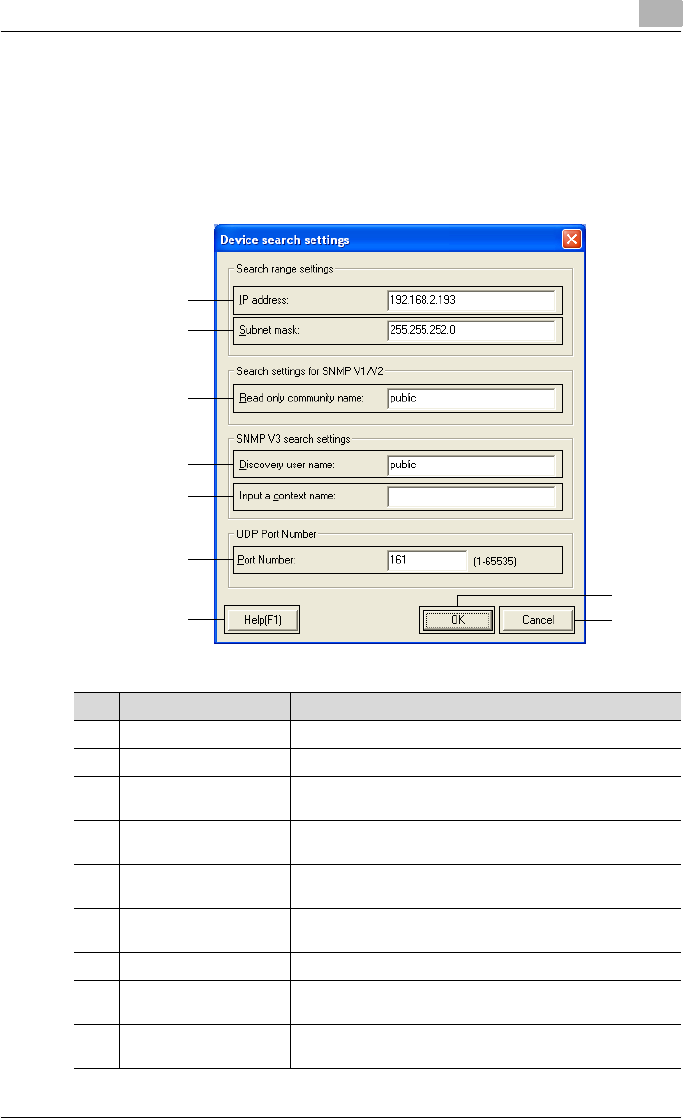 9 [Cancel] button Displays the Search Settings dialog box again without saving