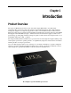About This Manual Document Purpose and Intended Audience This document provides the user of the Apex Spectrometer with instructions for setting up, calibrating and performing experiments with their spectrometer. What’s New in this Document This version of the Apex Installation and Operation Manual updates the instructions for calibrating the spectrometer. Document Summary Chapter Description Chapter 1: Introduction Contains descriptive information about the Apex Spectrometer and how sampling works.