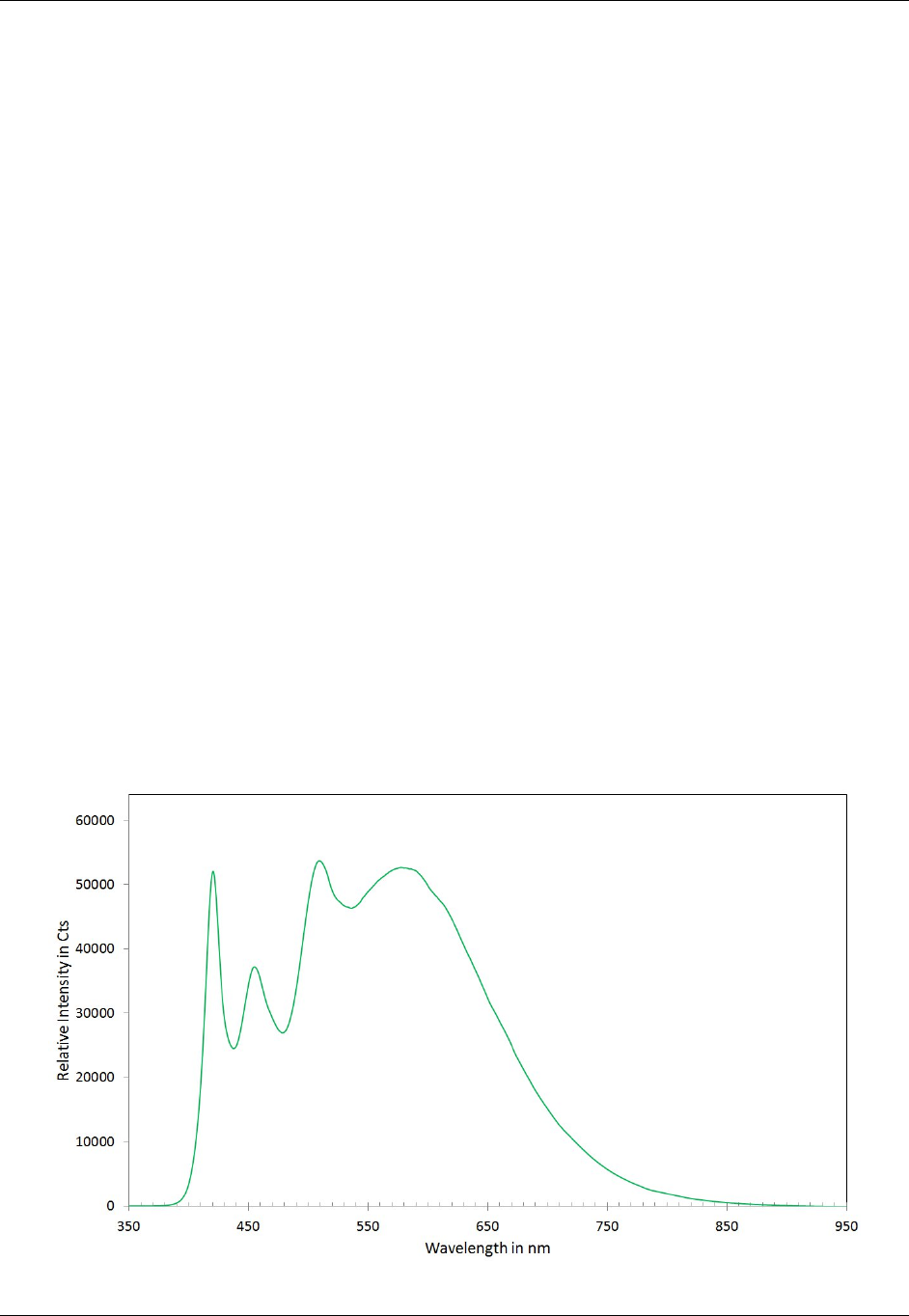 LEDs at different currents. The spectral distribution is set at the factory and should be similar to the