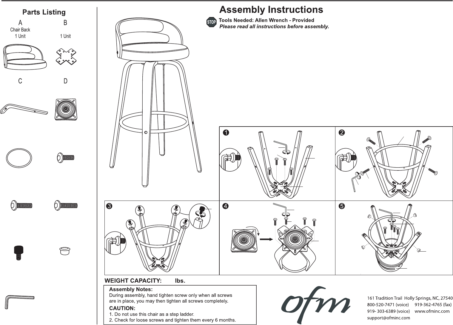 Attach Turnplate(D) to Chair Back(A),using four M6*18mm Screws (F) as shown.