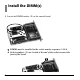 2 Push out the white lock tabs at either end of the DIMM socket. Caution! Circuit boards can be damaged by static electricity and rough handling. To avoid damage, ground yourself before handling DIMMs. 3 Remove the DIMM from its shipping package. 4 Align the DIMM with the narrow strip (1) on its metallic contact edge toward the front of the control board, then carefully insert the DIMM in the socket.